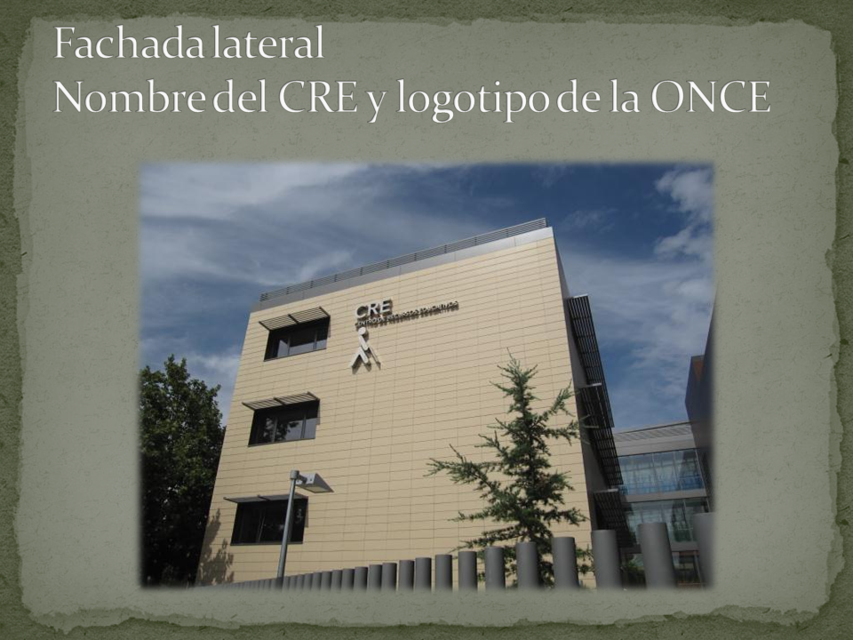 Fachada lateral. Nombre del CRE y logotipo de la ONCE