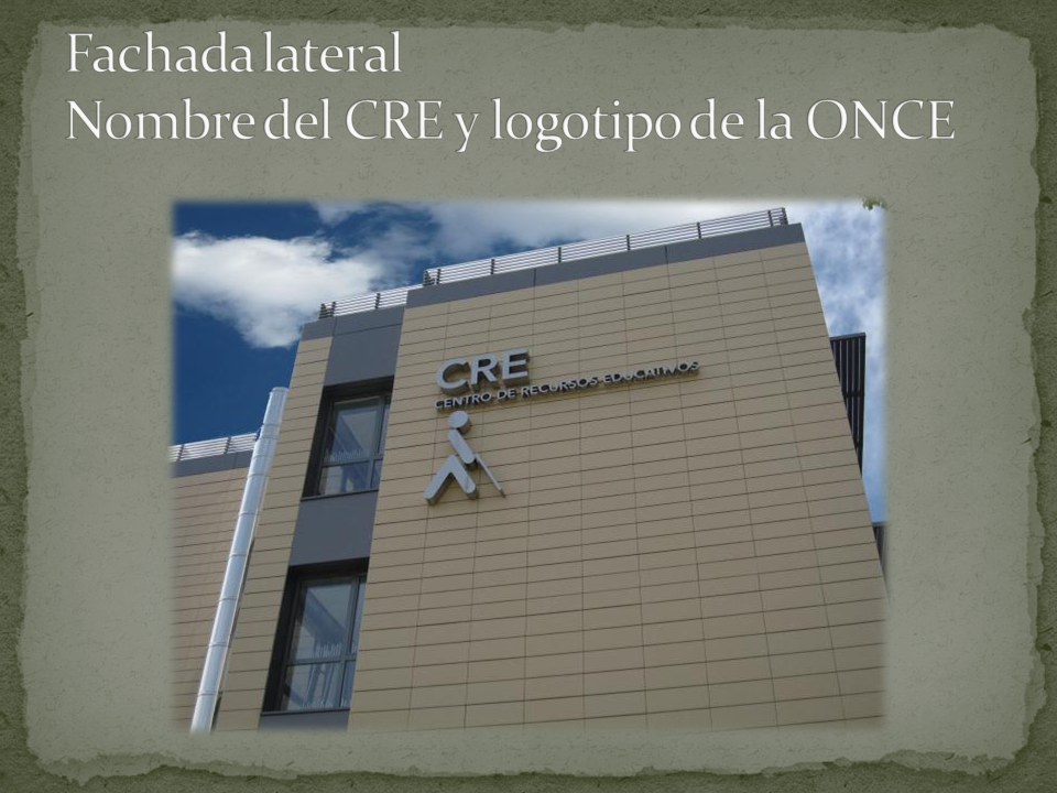 Fachada lateralFachada lateral. Nombre del CRE y logotipo de la ONCEhttps://educacion.once.es/cres/cre-de-la-once-en-madrid/conocenos/album-de-fotografias/fachada-lateral/viewhttps://educacion.once.es/cres/cre-de-la-once-en-madrid/conocenos/album-de-fotografias/fachada-lateral/@@images/image-1200-8286699223d1d3706fd4d2c47bdf57cf.png