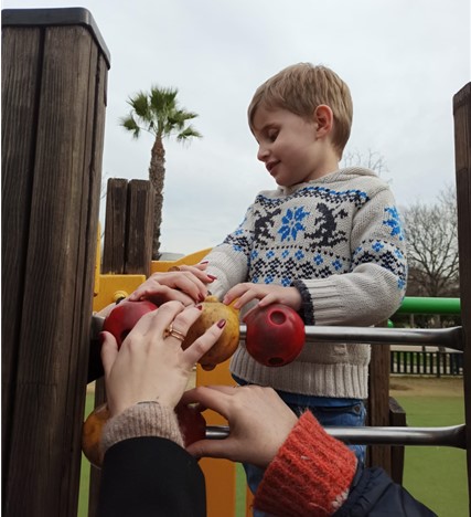 alumno subido en una estructura del parque donde hay un tobogán y un puente