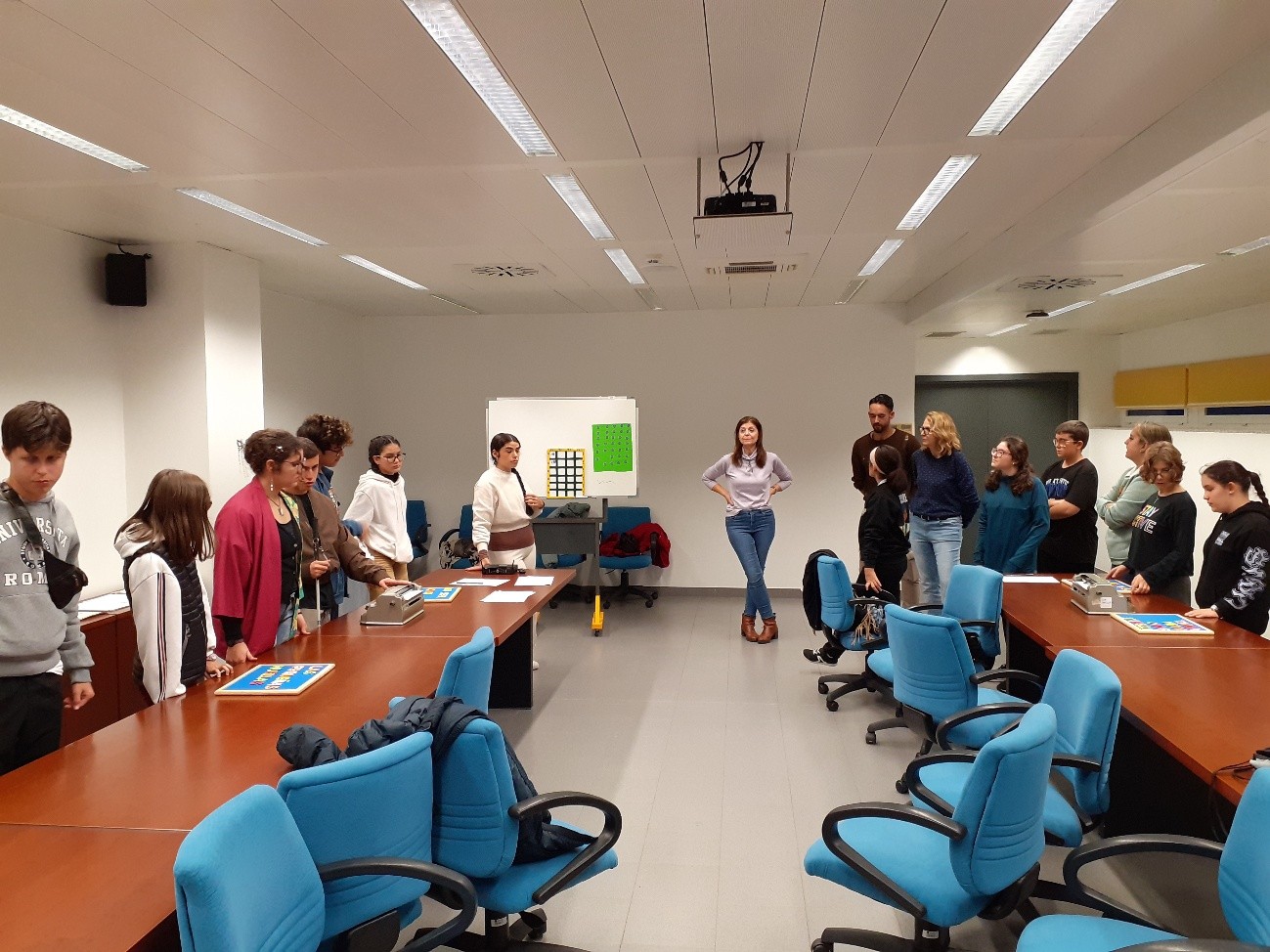 UNO DE LOS GRUPOS EN EL CLAUSTRO DURANTE EL TALLER “200 AÑOS DEL BRAILLE”.