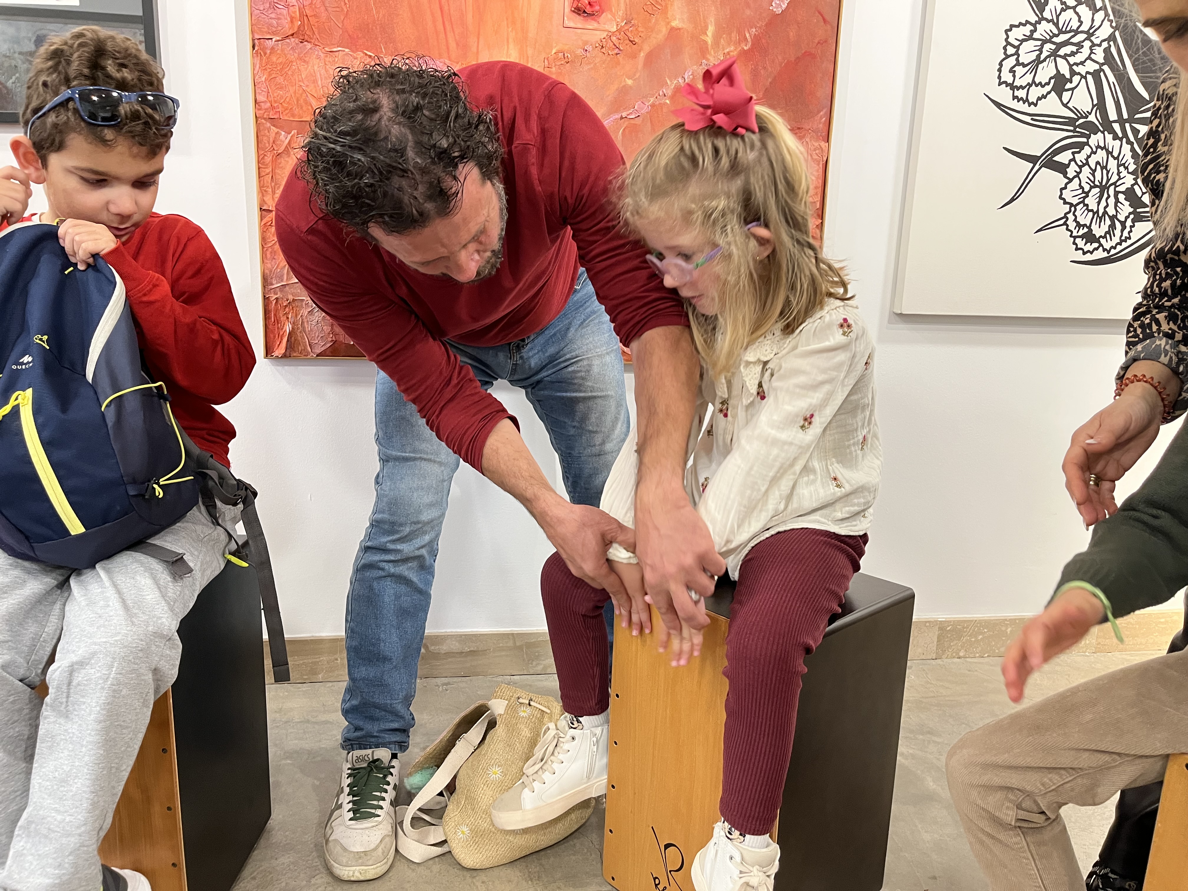TALLER DE PERCUSIÓNUNA ALUMNA ESTA SENTADA ENCIMA DE UN CAJON MÚSICAL, EL MONITOR LE ENSEÑA A PONER LAS MANOS Y COMO TIENE QUE MOVERLAS PARA CREAR MÚSICAhttps://educacion.once.es/cres/cre-de-la-once-en-sevilla/repositorio/jornadas-ludicas-deportivas-de-pequenos-marzo-2026/taller-de-percusion.jpeg/viewhttps://educacion.once.es/cres/cre-de-la-once-en-sevilla/repositorio/jornadas-ludicas-deportivas-de-pequenos-marzo-2026/taller-de-percusion.jpeg/@@images/image-1200-ba75abeabe68949695d636f6228c0f09.jpeg