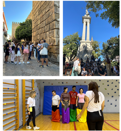 El sábado por la mañana, nuestros viajeros se dirigieron al centro de Sevilla, donde recorrieron las zonas más emblemáticas del casco antiguo de Sevilla, escuchando y aprendiendo de todas las historias que los guías les contaban, acompañadas de distintas pruebas (olfativas, de creación literaria, de movimiento, etc.).