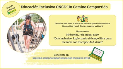 <p>Continuando con las sesiones en abierto con las que se busca formar a profesionales, familias y estudiantes del ámbito educativo y social en distintos aspectos vinculados a la intervención educativa con el alumnado con discapacidad visual, contaremos el próximo <strong>miércoles 7 de mayo a las 17:30 h.</strong> con un webinar en el que se proporcionará a los participantes herramientas, recursos y estrategias para que los menores puedan disfrutar de algo tan importante como el ocio y el tiempo libre de manera plena, inclusiva y accesible, fomentando la autonomía y la socialización.</p>
